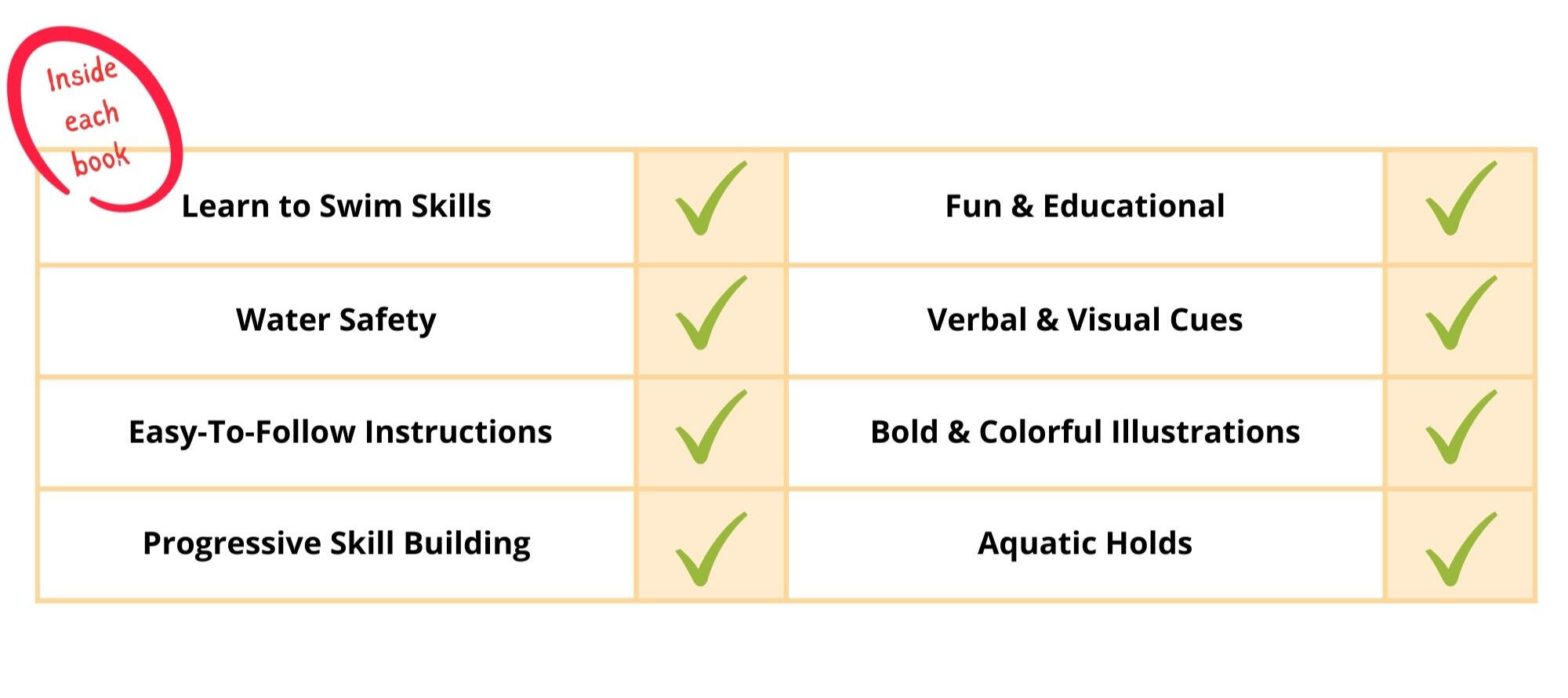 I know nothing about teaching or swimming - Not a problem! We've made these books so easy to follow ANYONE can teach swimming and know exactly what to teach and in which order to teach it. You just need to follow each step. We guarantee you will learn along with your little ones.